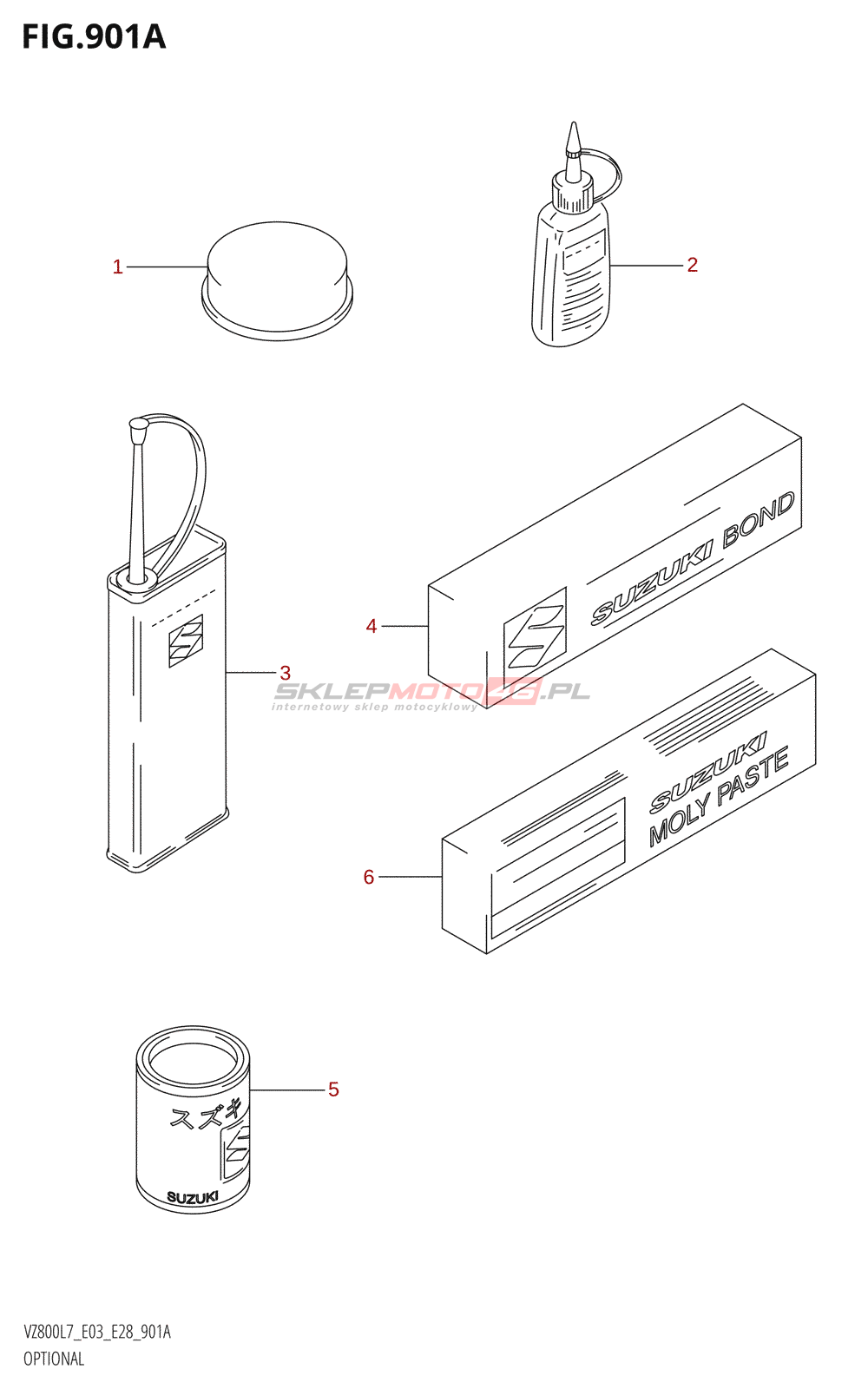 Wszystkie części widoczne na fiszkach to oryginalne części OEM Suzuki.