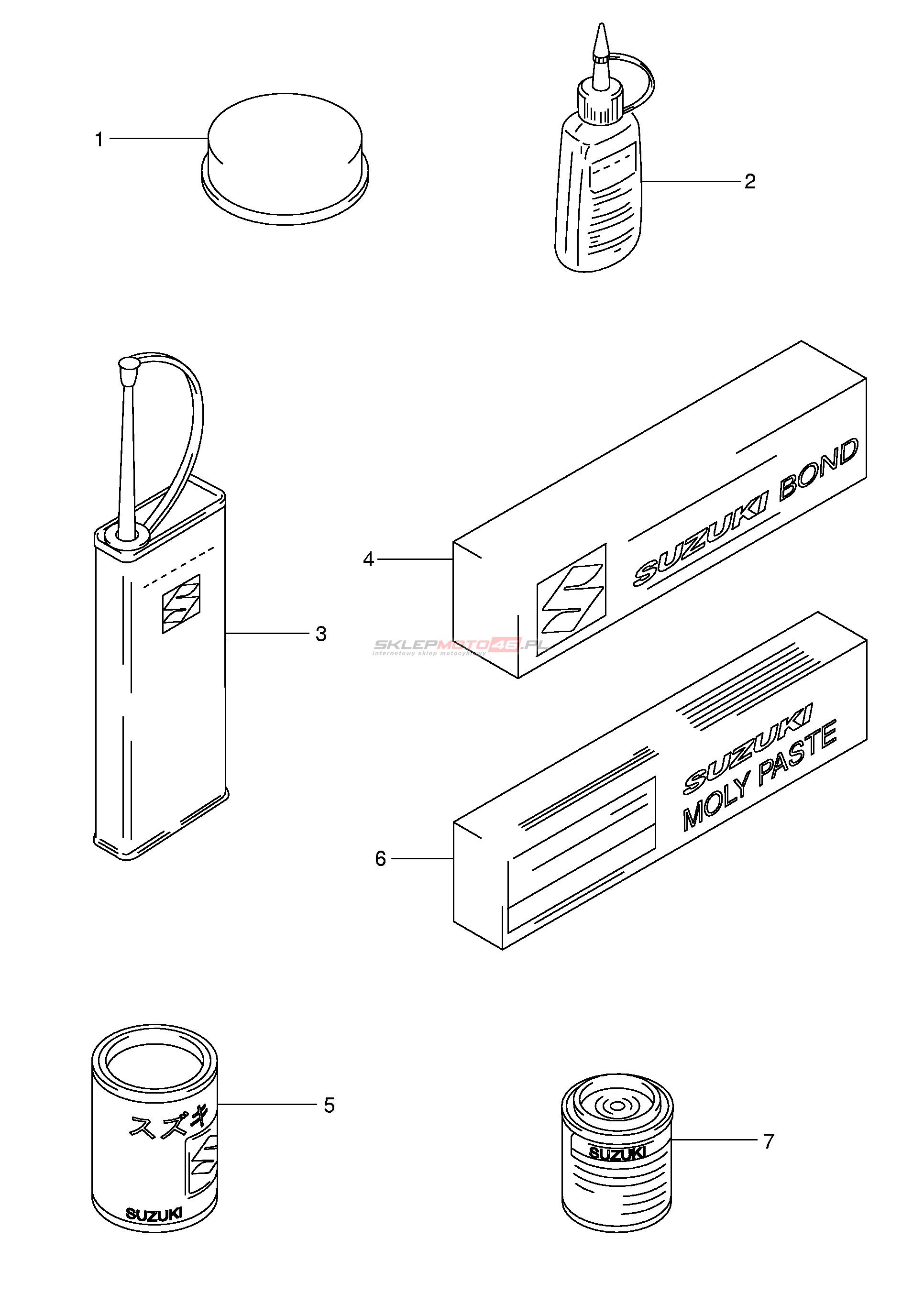 Wszystkie części widoczne na fiszkach to oryginalne części OEM Suzuki.