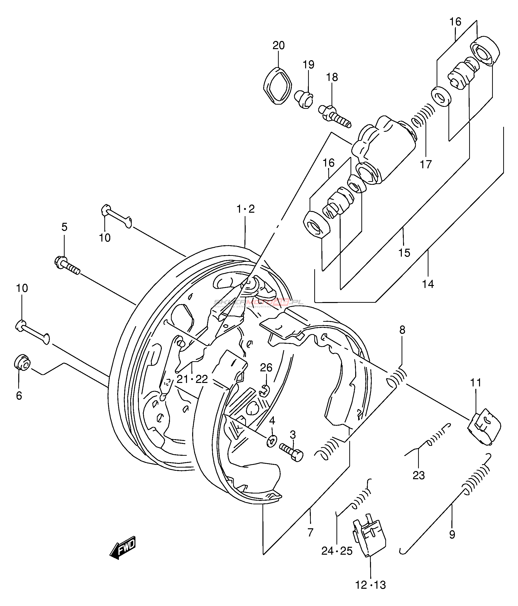 Wszystkie części widoczne na fiszkach to oryginalne części OEM Suzuki.