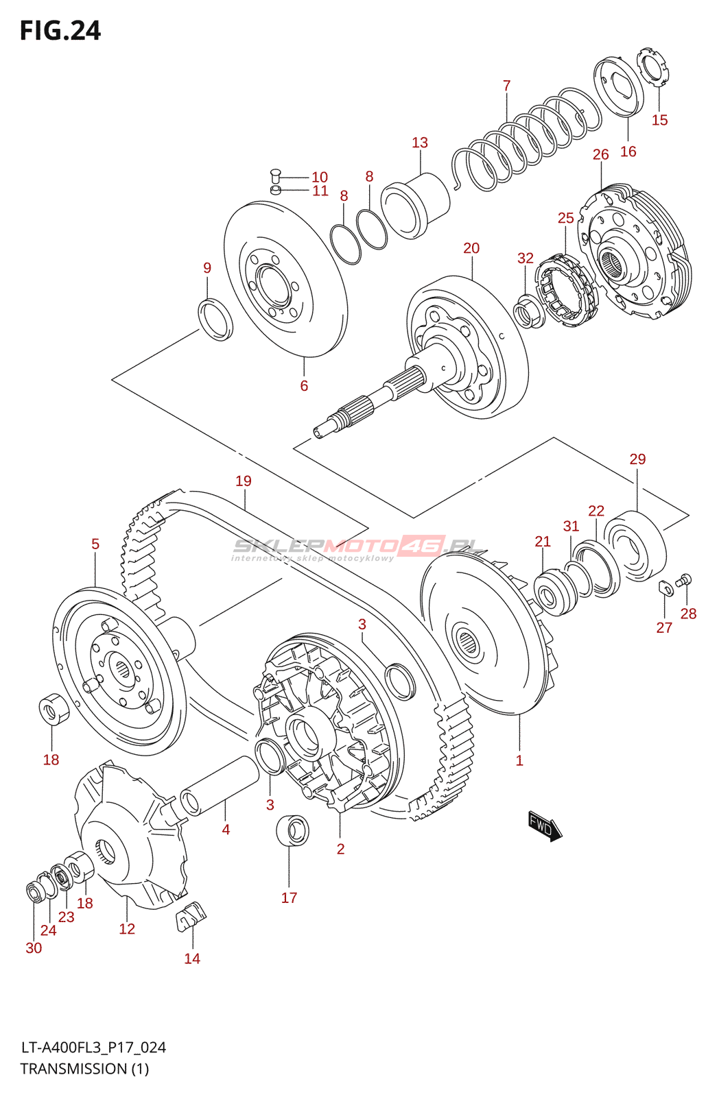 Wyszukiwarka części Suzuki LT-A400F L3 /​ LT-A400FZ L3 (P17,P24) Engine /​ Transmission