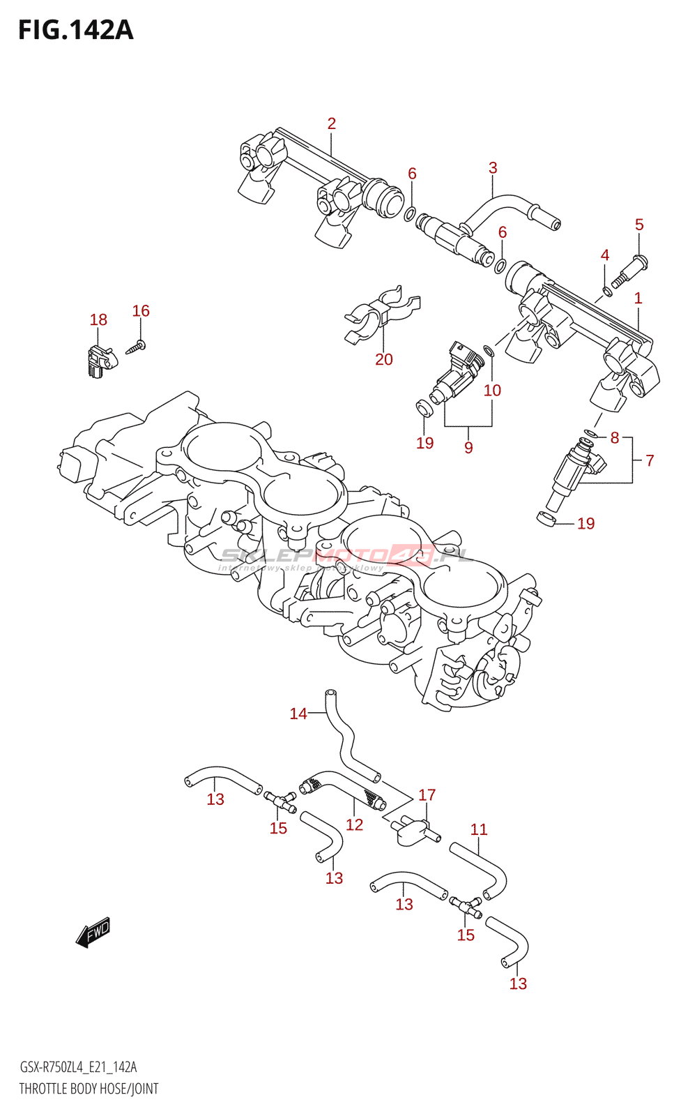 Wszystkie części widoczne na fiszkach to oryginalne części OEM Suzuki.