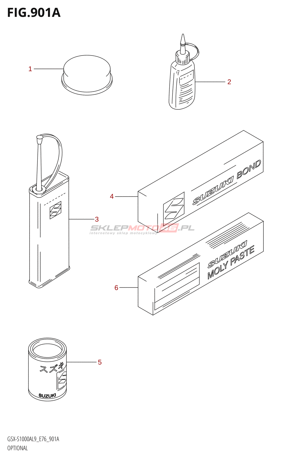 Wszystkie części widoczne na fiszkach to oryginalne części OEM Suzuki.