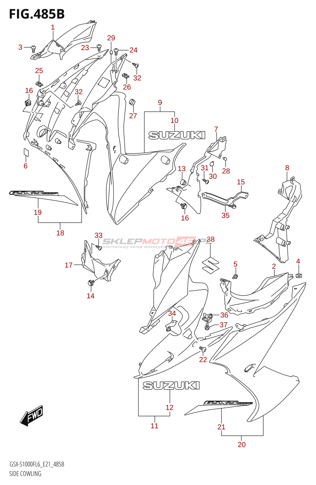Wszystkie części widoczne na fiszkach to oryginalne części OEM Suzuki.