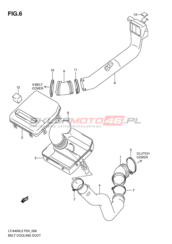 Belt cooling duct LT-A400 KingQuad 400 2WD Model code LT-A400 L2 Engine Capacity 376 Year 2012