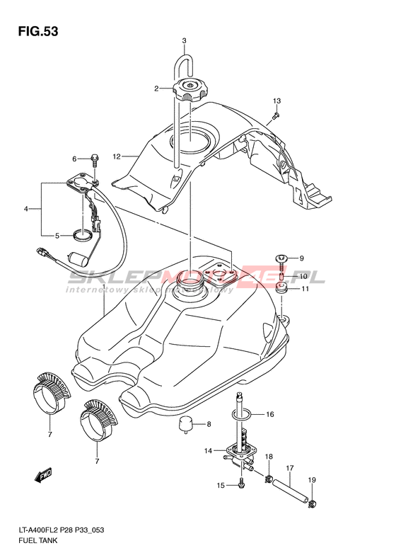 ZBIORNIK PALIWA LT-A400F KingQuad 400 4WD Model code LT-A400F L2 Engine Capacity 376 Year 2012