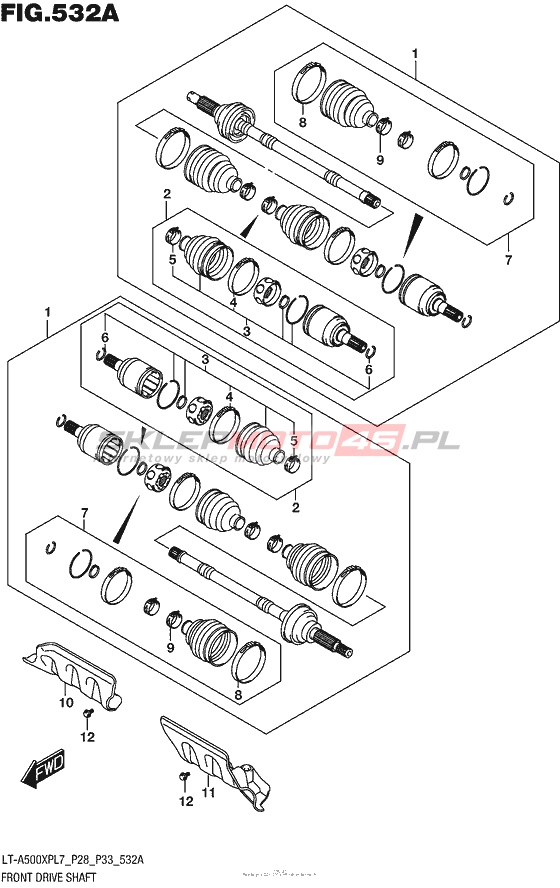 Front Drive Shaft LT-A500XP KingQuad 500AXi Power Steering Model code LT-A500XP L7 Engine Capacity 493 Year 2017