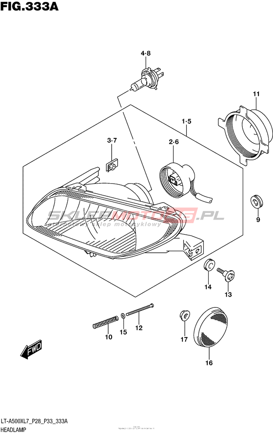 Headlamp (Lt-A500Xl7 P28) LT-A500X KingQuad 500AXi Model code LT-A500X L7 Engine Capacity 493 Year 2017