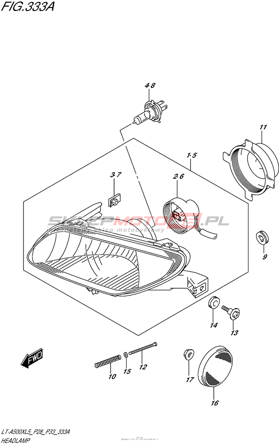 Headlamp (Lt-A500Xl5 P28) LT-A500XZ KingQuad 500AXi Limited Edition Model code LT-A500XZ L5 Engine Capacity 493 Year 2015