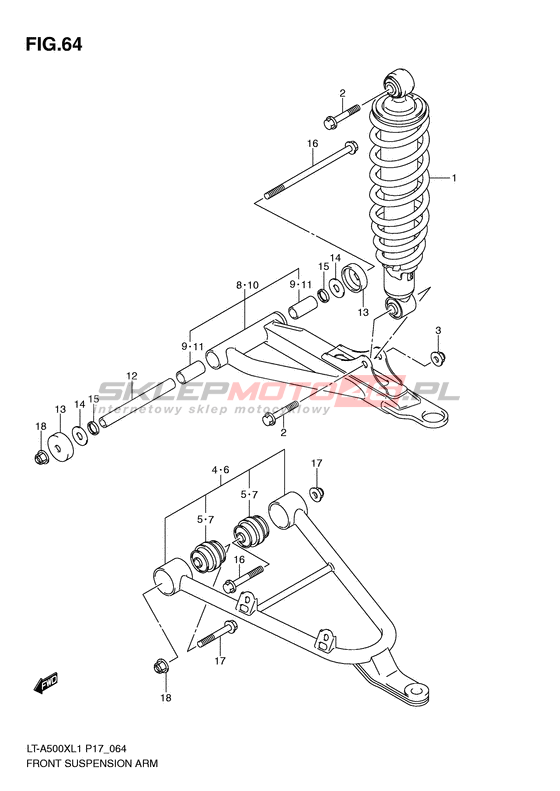 Front suspension arm LT-A500X KingQuad 500AXi Model code LT-A500X L1 Engine Capacity 493 Year 2011