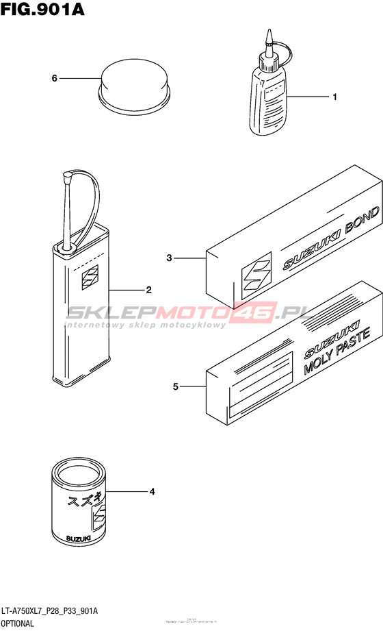 Wszystkie części widoczne na fiszkach to oryginalne części OEM Suzuki.