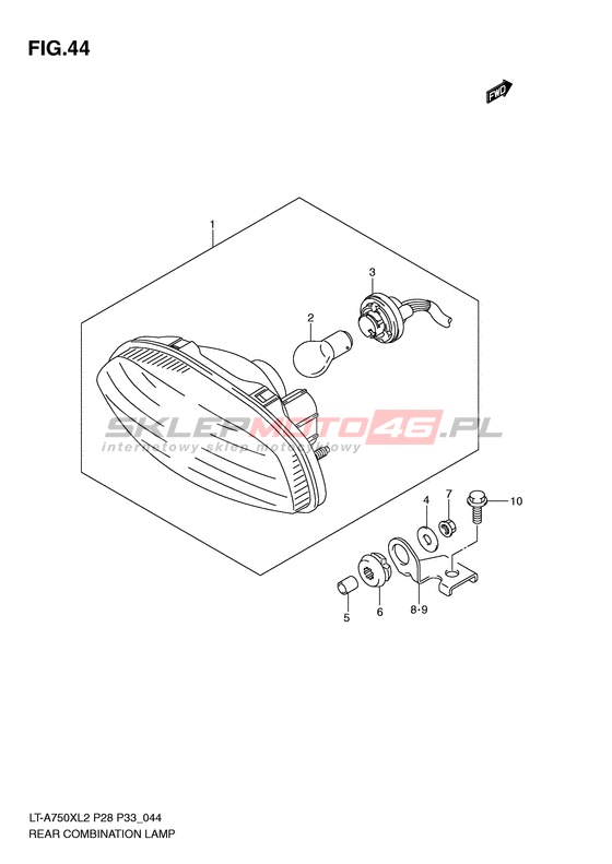 OŚWIETLENIE TYLNE LT-A750X KingQuad 750AXi Model code LT-A750X L2 Engine Capacity 722 Year 2012