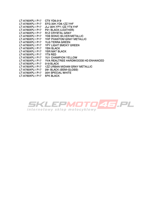 KARTA KOLORÓW LT-A750XP KingQuad 750AXi Power Steering Model code LT-A750XP L1 Engine Capacity 722 Year 2011