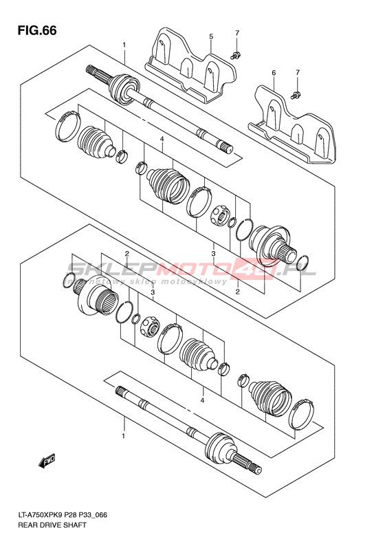 Rear drive shaft LT-A750XP KingQuad 750AXi Power Steering Model code LT-A750XP L0 Engine Capacity 722 Year 2010