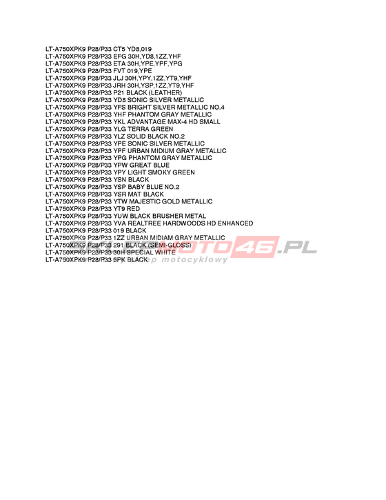 KARTA KOLORÓW LT-A750XP KingQuad 750AXi Power Steering Model code LT-A750XP K9 Engine Capacity 722 Year 2009