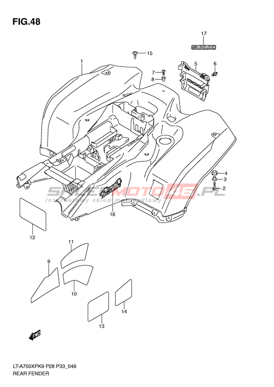 BŁOTNIK TYLNY LT-A750XP KingQuad 750AXi Power Steering Model code LT-A750XP K9 Engine Capacity 722 Year 2009