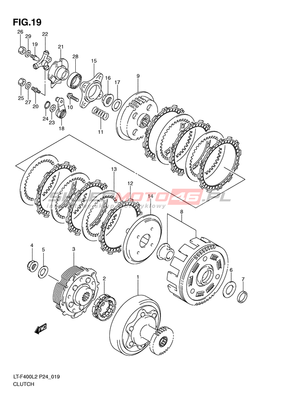 SPRZĘGŁO LT-F400 KingQuad 400 2WD Model code LT-F400L2(P24) L2 Engine Capacity 376 Year 2012