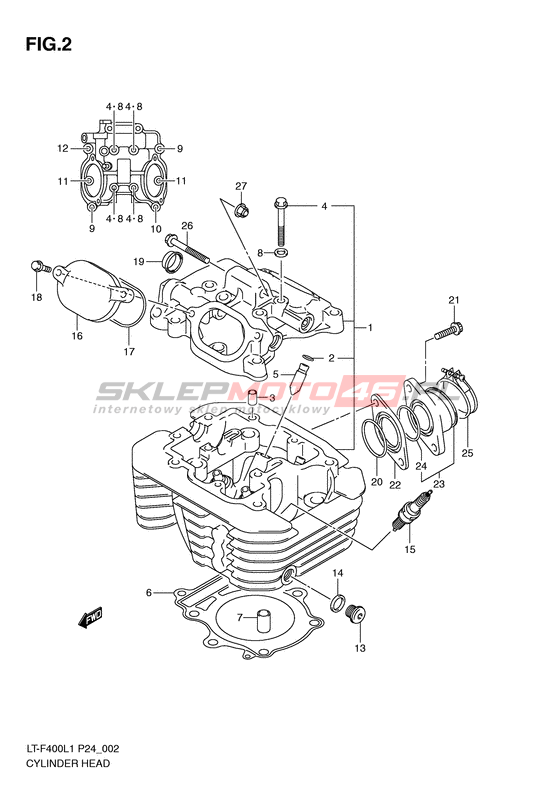 GŁOWICA LT-F400 KingQuad 400 2WD Model code LT-F400L1(P24) L1 Engine Capacity 376 Year 2011