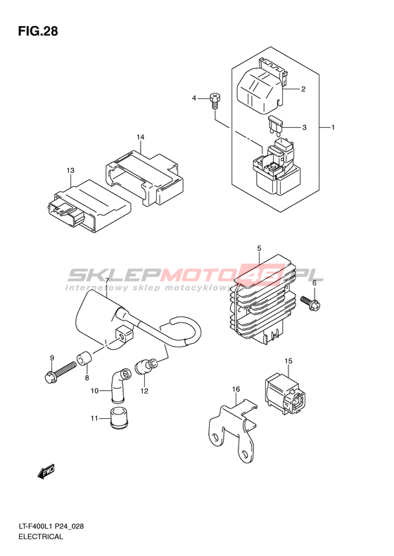 UKŁAD ELEKTRYCZNY LT-F400 KingQuad 400 2WD Model code LT-F400L1(P24) L1 Engine Capacity 376 Year 2011