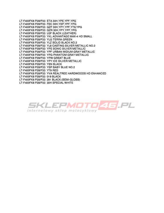 KARTA KOLORÓW LT-F400FU KingQuad 400 4WD Model code LT-F400FUL0 Engine Capacity 376 Year 2010
