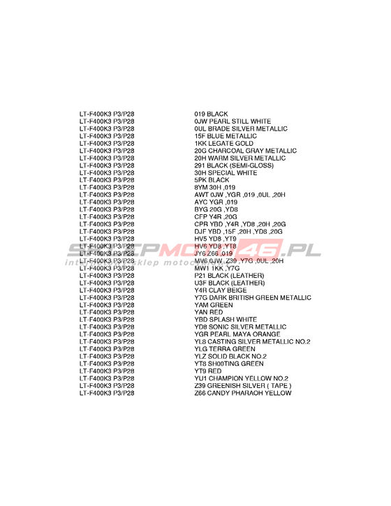 KARTA KOLORÓW LT-F400 Eiger 2WD Model code LT-F400K6 Engine Capacity 376 Year 2006