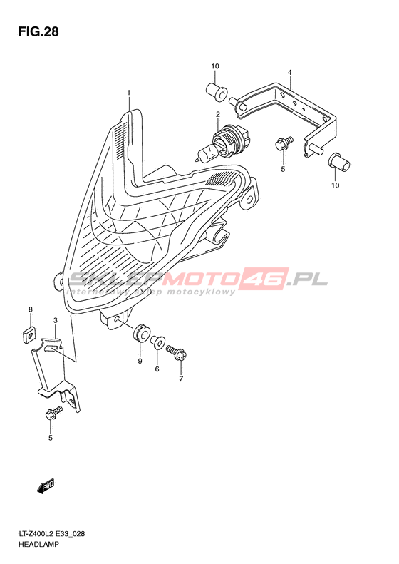 REFLEKTOR LT-Z400Z QuadSport Model code LT-Z400ZL2 Engine Capacity 398 Year 2012