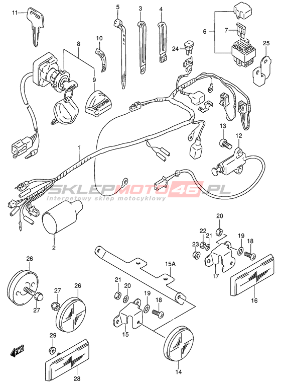 Wszystkie części widoczne na fiszkach to oryginalne części OEM Suzuki. Możesz złożyć zamówienie telefonicznie, dzwoniąc pod numer +48 512-024-444, lub poprzez nasz sklep internetowy. Dostępność wybranych części zostanie automatycznie sprawdzona po dodaniu ich do koszyka.