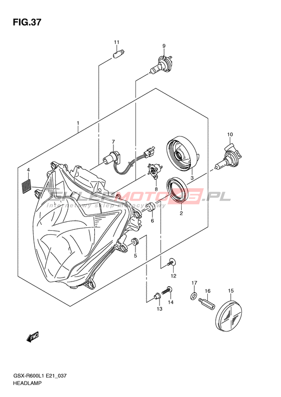 Wszystkie części widoczne na fiszkach to oryginalne części OEM Suzuki.