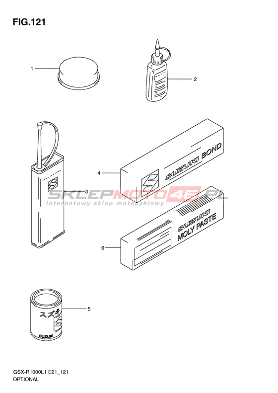 Wszystkie części widoczne na fiszkach to oryginalne części OEM Suzuki.