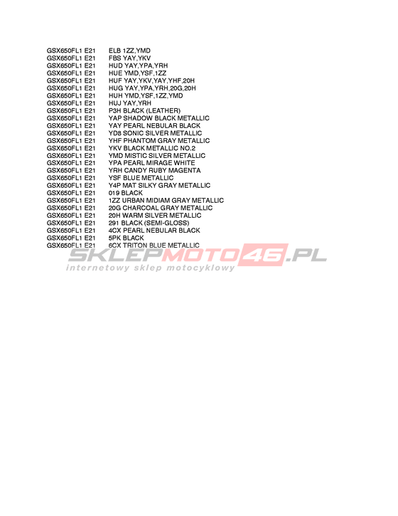 KARTA KOLORÓW GSX650F (ABS) Year 2011