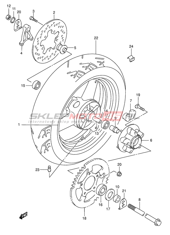 TIRE,RR(150/70 ZR17 69W) 65110-08F10-000 Sugerowana ilość: