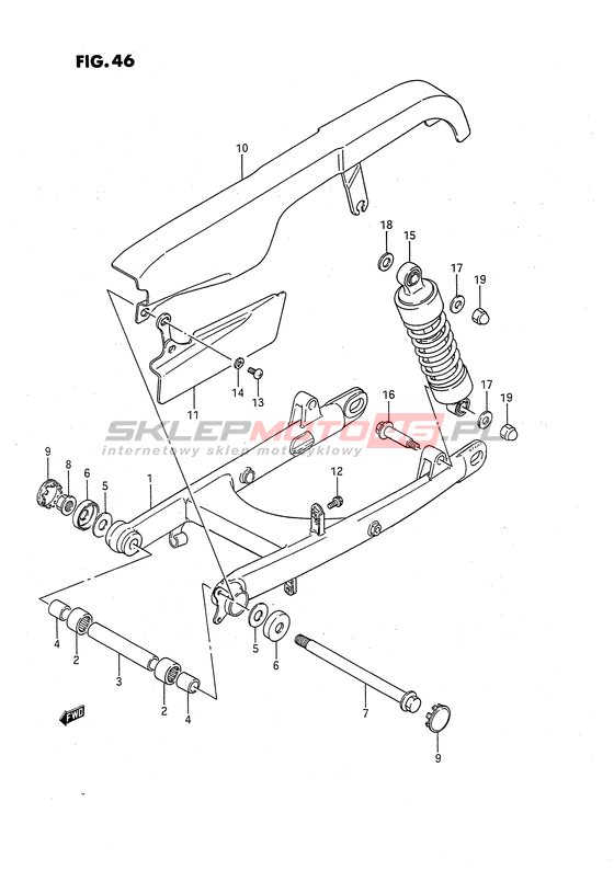 Swinging arm, rear (black) 61100-24B10-019 Sugerowana ilość: |