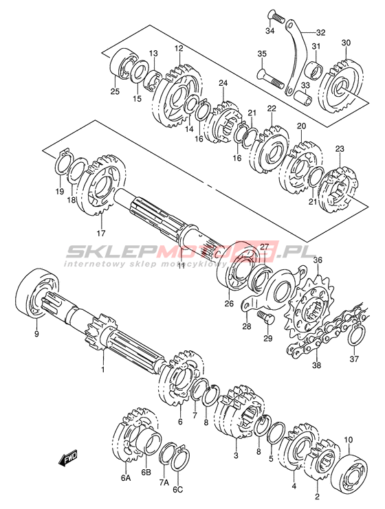 Wszystkie części widoczne na fiszkach to oryginalne części OEM Suzuki.