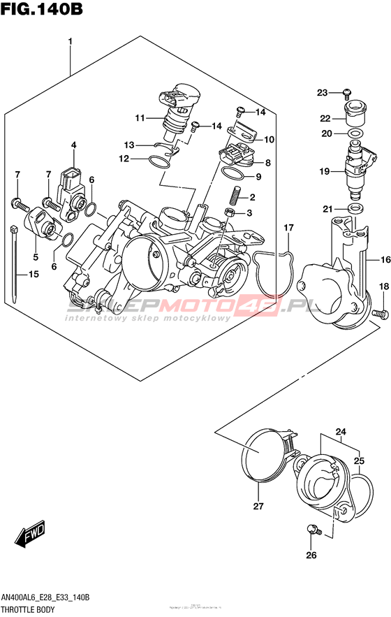 Throttle Body (An400Zal6 E28) AN400Z (ABS) Burgman (European analogue of "SkyWave") Year 2016