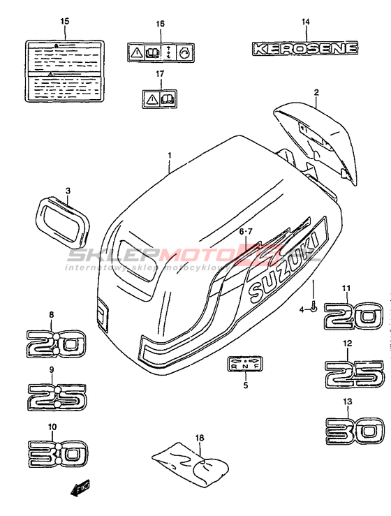 Wszystkie części widoczne na fiszkach to oryginalne części OEM Suzuki. Możesz złożyć zamówienie telefonicznie, dzwoniąc pod numer +48 512-024-444, lub poprzez nasz sklep internetowy. Dostępność wybranych części zostanie automatycznie sprawdzona po dodaniu ich do koszyka.