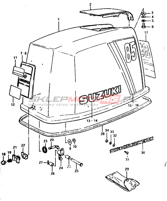 Wszystkie części widoczne na fiszkach to oryginalne części OEM Suzuki.