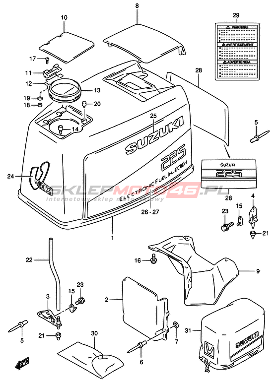 Wszystkie części widoczne na fiszkach to oryginalne części OEM Suzuki. Możesz złożyć zamówienie telefonicznie, dzwoniąc pod numer +48 512-024-444, lub poprzez nasz sklep internetowy. Dostępność wybranych części zostanie automatycznie sprawdzona po dodaniu ich do koszyka.