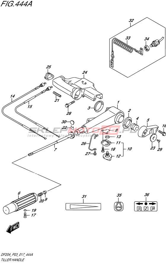 Tiller handle DF15A S/L; THS/L Year 2017