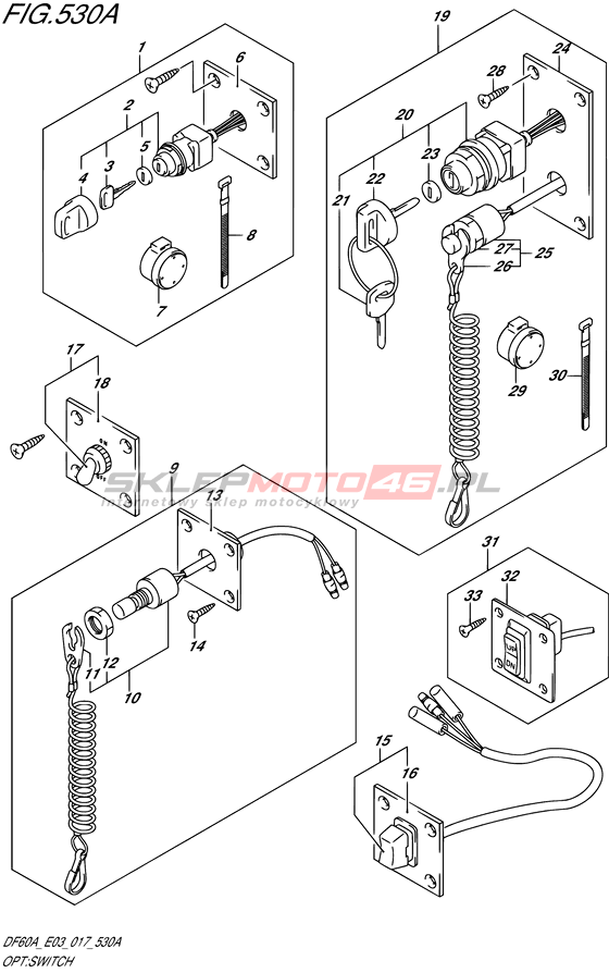 Wszystkie części widoczne na fiszkach to oryginalne części OEM Suzuki.
