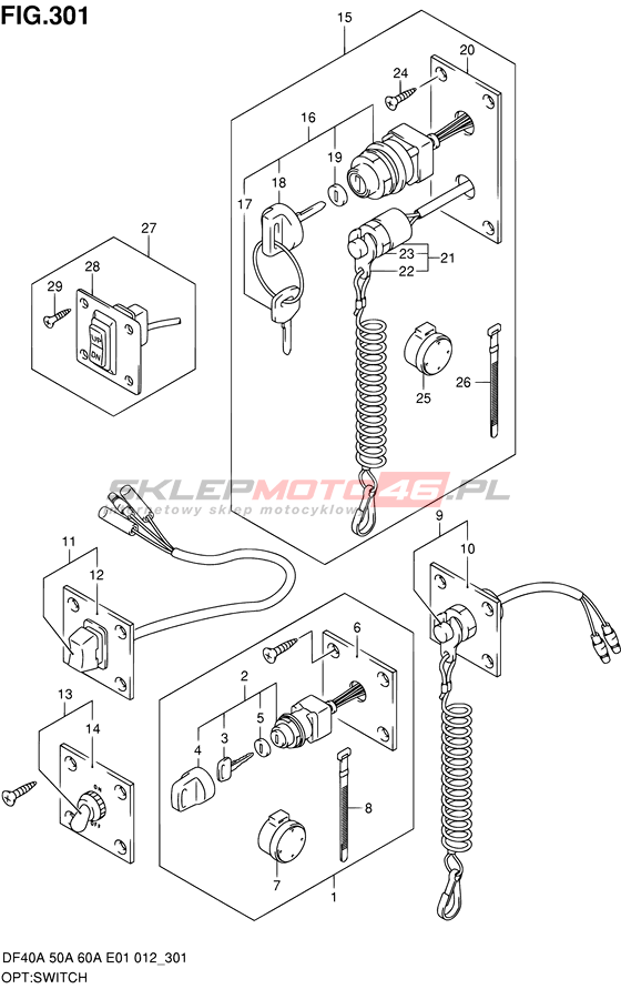 Wszystkie części widoczne na fiszkach to oryginalne części OEM Suzuki.