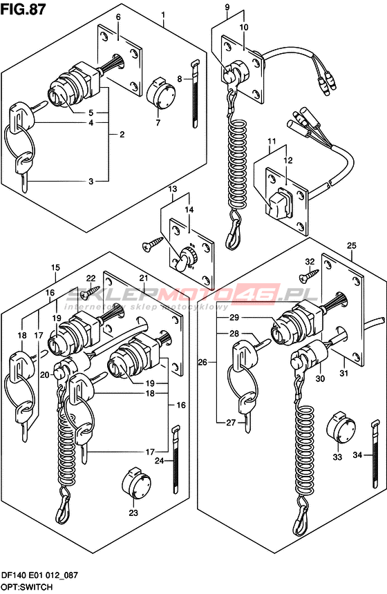 Wszystkie części widoczne na fiszkach to oryginalne części OEM Suzuki.